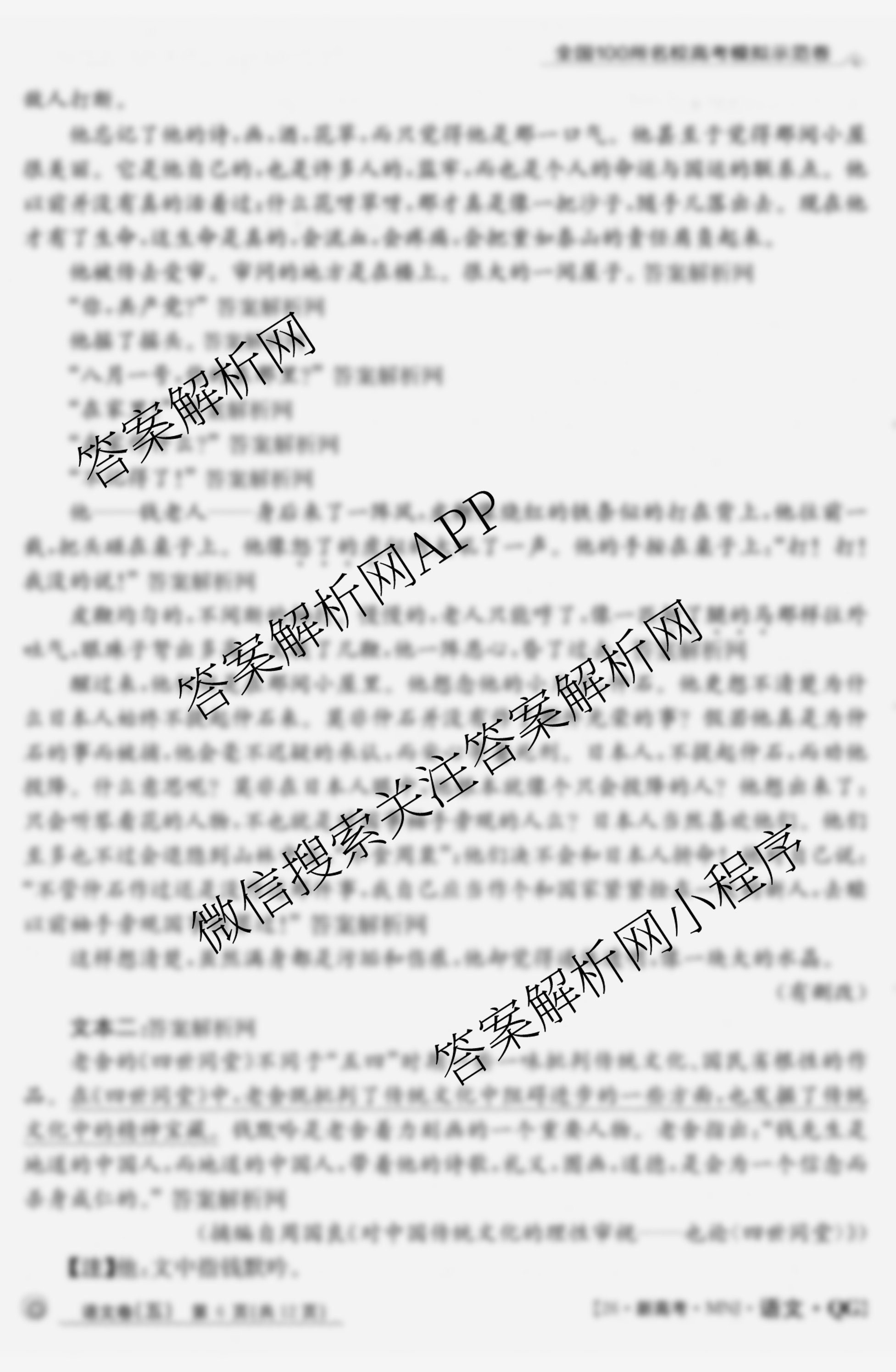 [全国100所名校高考模拟示范卷]2026年普通高等学校招生全国统一考试语文模拟测试[26新高考MNJ语文QG](五)5试题