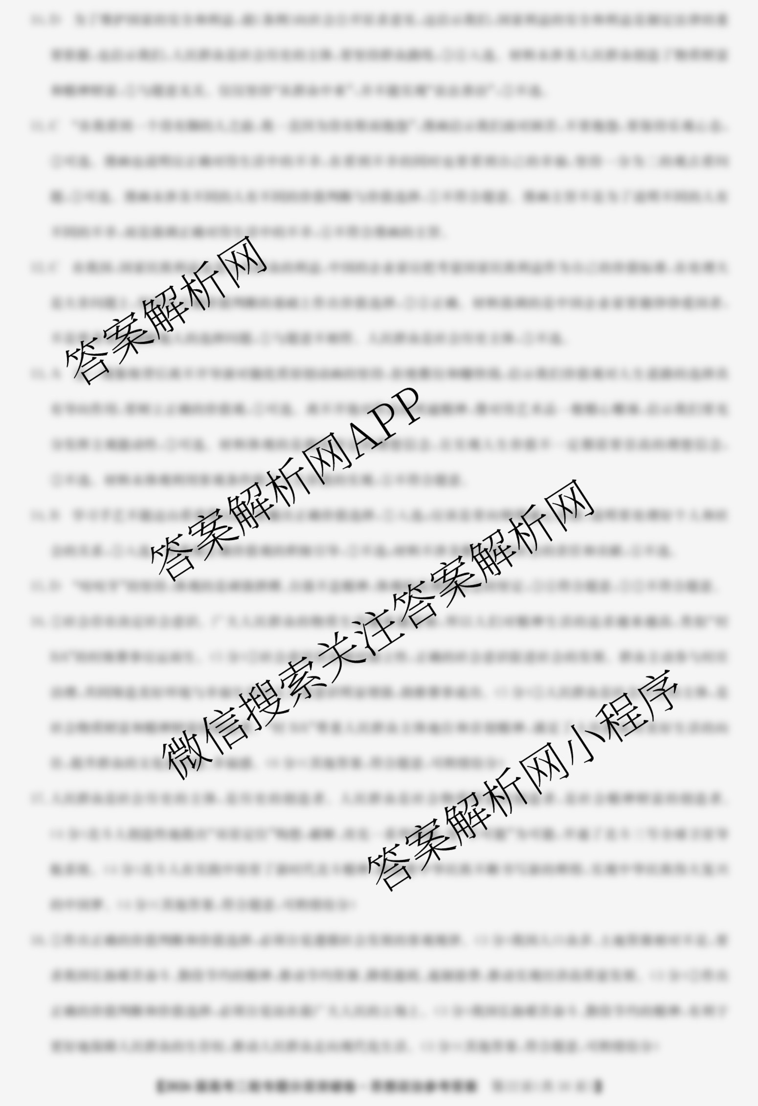 九师联盟2026届高考二轮专题分层突破卷(十一)11政治答案