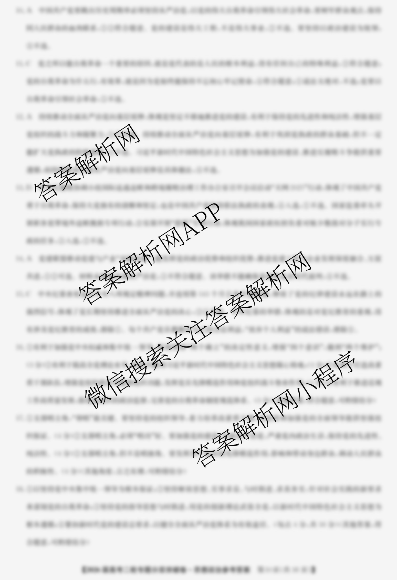九师联盟2026届高考二轮专题分层突破卷(五)5政治答案