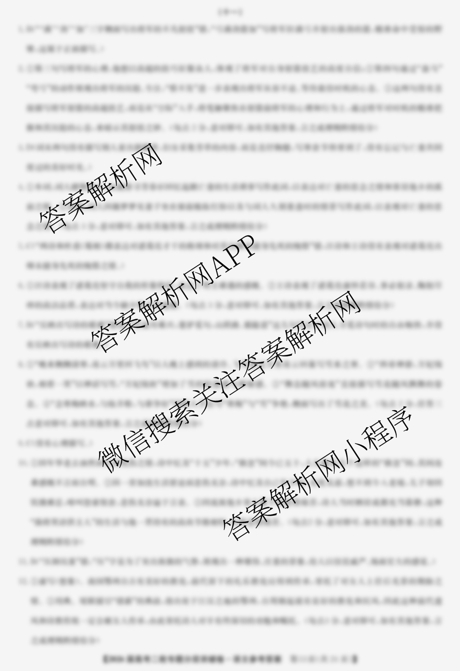 九师联盟2026届高考二轮专题分层突破卷(十一)11语文答案