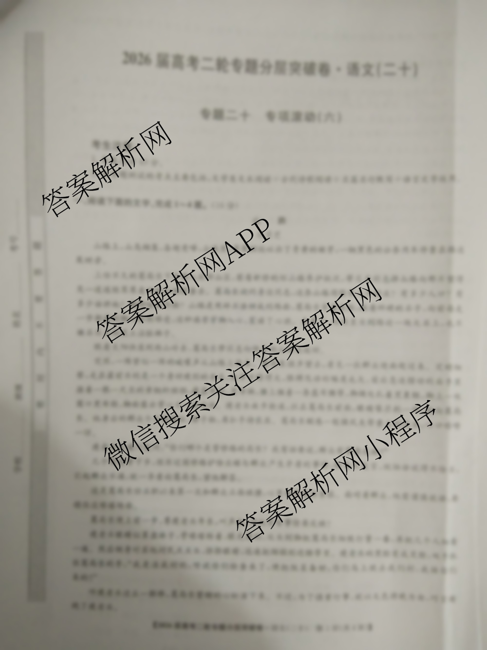 九师联盟2026届高考二轮专题分层突破卷(二十)20语文试题