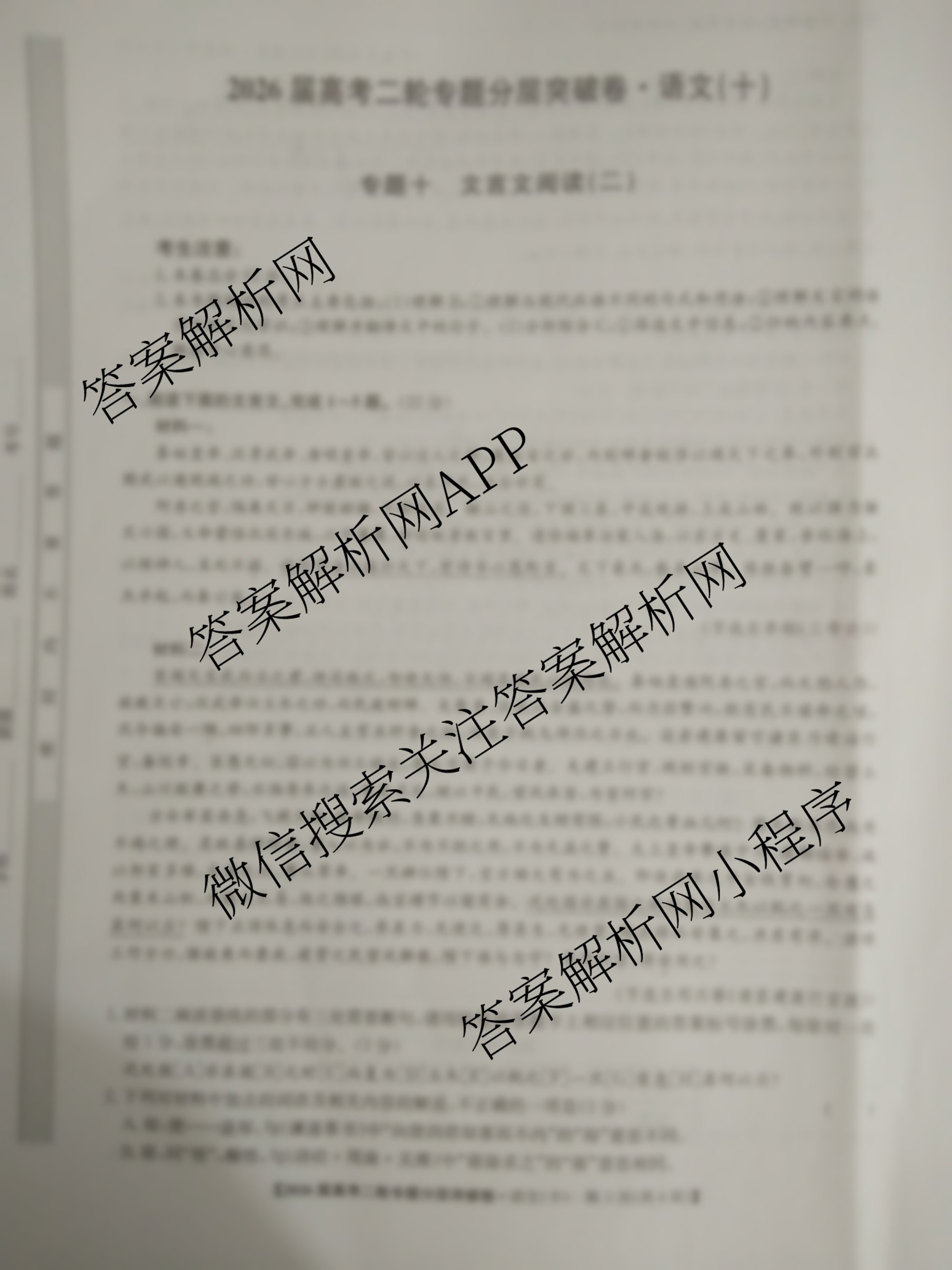 九师联盟2026届高考二轮专题分层突破卷(十)10语文试题