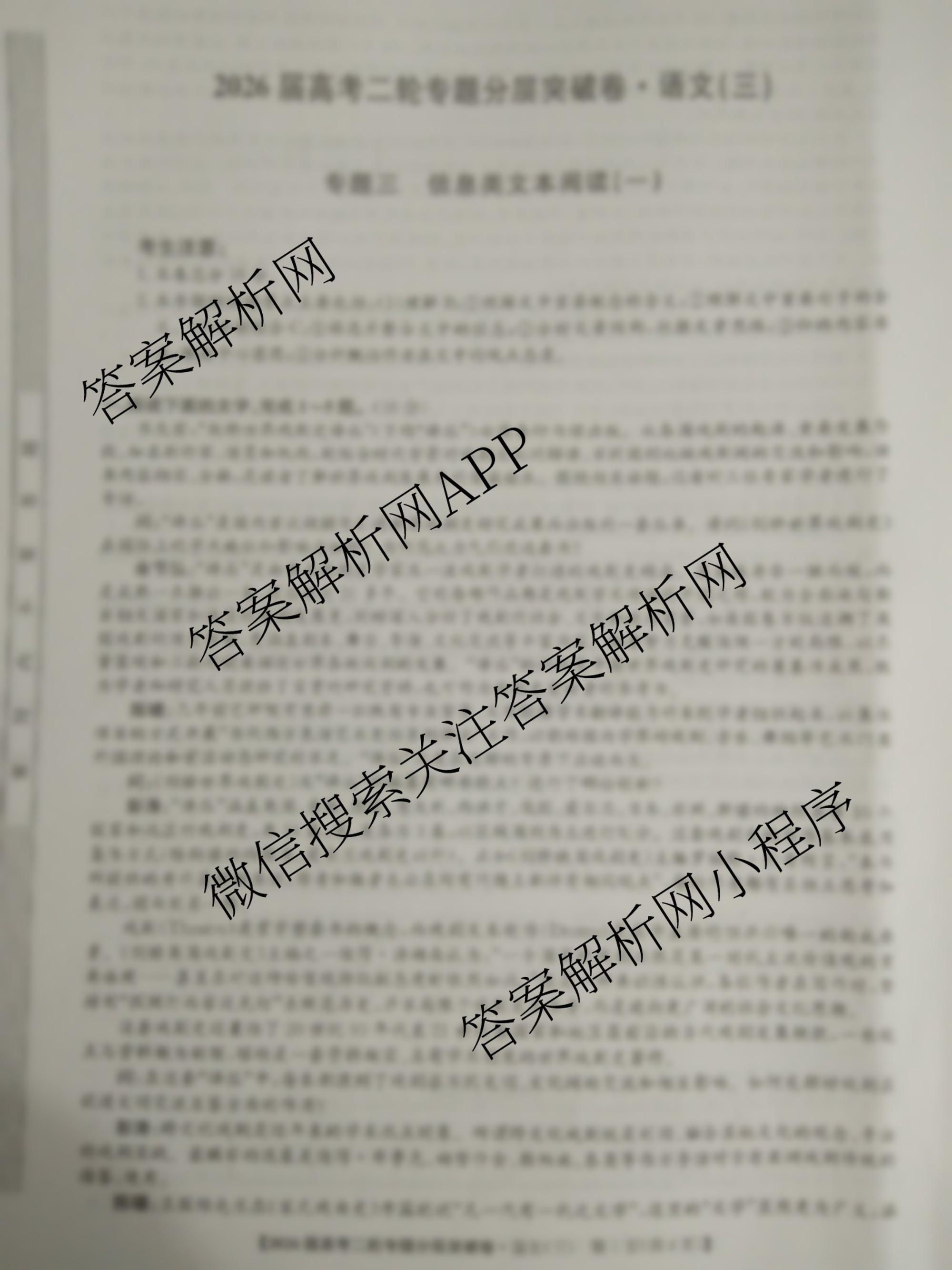 九师联盟2026届高考二轮专题分层突破卷(三)3语文试题