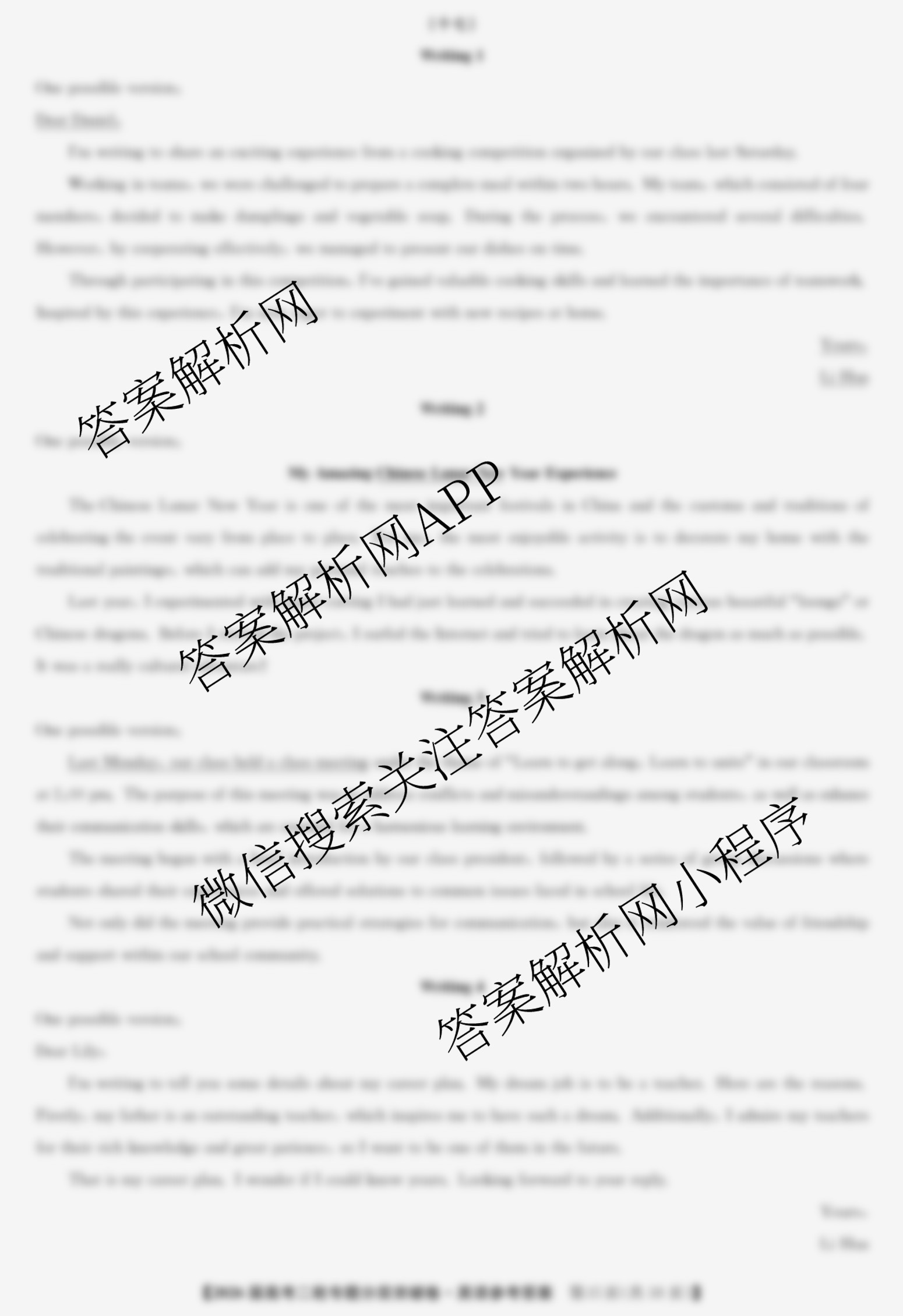 九师联盟2026届高考二轮专题分层突破卷(十七)17英语答案