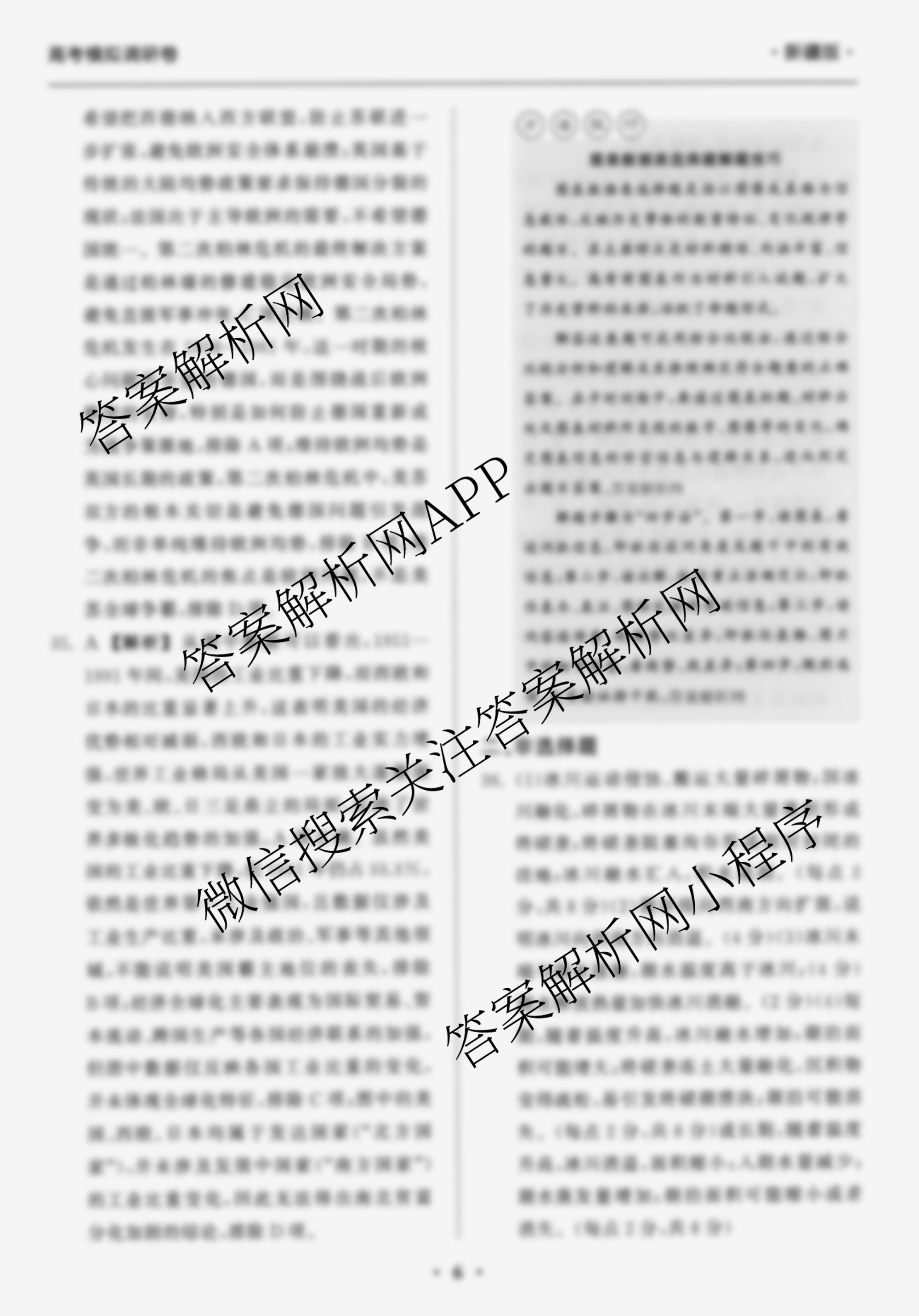- [高三]天舟高考(衡中同卷)·2026年普通高中学业水平选择性考试模拟调研卷(一)1地理(XB专版)答案